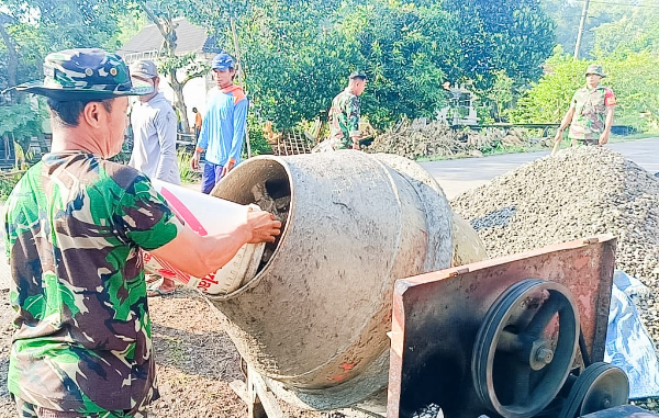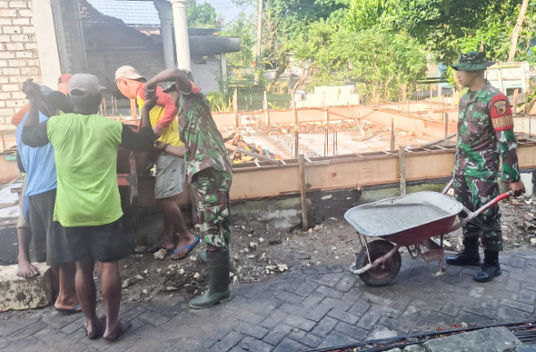 BOJONEGORO || Gardatipikornews.com -- Jajaran TNI dari Koramil 09/Sumberrejo Kodim 0813 Bojonegoro, bersama masyarakat melaksanakan karya bakti pengecoran pondasi Musholla Baitul Mukminin Dusun Nglandean RT.010/RW.002 Desa Margoagung Kecamatan Sumberrejo Kabupaten Bojonegoro Jawa Timur, Jum'at (9/5/2025).