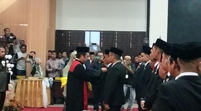 Ketua Pengadilan Negeri Rantauprapat, Tommy Manik, memimpin pelantikan dan pengambilan sumpah jabatan acara berlangsung khidmat di Ruang Rapat lantai 2 Gedung DPRD Kabupaten Labura.