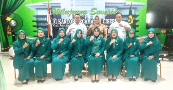 Diawali dengan menyanyikan lagu kebangsaan Indonesia Raya, Mars Tegar Beriman serta Mars PKK, mewakili Plt. Camat Adhi Nugraha S.Stp MH, Kasi PM Nenih Triana mengucapkan kata maaf atas ketidakhadiran Plt. Camat Ciseeng yang tengah mendapat tugas ke BPKAD Kab. Bogor. Dan mengucapkan selamat kepada seluruh Ketua Tp. Pkk atas pengukuhan serta perpanjangan tugas mengikuti masa tugas kepala desa. Perpanjangan tugas selain harus disyukuri juga wajib dijalankan walau dirasakan berat karena amanah, Ketua Tp. Pkk harus menjadi contoh untuk masyarakat sekitar dalam menjalani kegiatan 10 Program Pokok PKK.