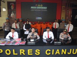 Polres Cianjur menggelar konferensi pers pengungkapan kasus tindak pidana pencurian di minimarket yang terjadi di 9 toko minimarket di wilayah Kabupaten Cianjur, konferensi pers tersebut dipimpin langsung oleh Kapolres Cianjur AKBP Rohman Yonky Dilatha, S.I.K., M.Si., M.H. dan berlangsung di depan Gedung Satreskrim Polres Cianjur, Senin (20/1/2025). Kapolres Cianjur mengatakan, kasus ini berdasarkan laporan polisi dari 9 tempat kejadian perkara (TKP) diantaranya di Kecamatan Pacet, Kecamatan Cianjur, Kecamatan Sukaresmi, Kecamatan Cilaku, 2 TKP di Kecamatan Cibeber, Kecamatan Ciranjang, Kecamatan Sukaluyu dan di Kecamatan Warungkondang yang terjadi dalam kurun waktu mulai tanggal 6 Oktober 2024 sampai dengan 7 Januari 2025. “Dari 9 TKP, rata-rata para pelaku melakukan aksinya pada pagi hari saat minimarket akan memulai jam operasional. Dari hasil pengembangan, terdapat beberapa TKP yang berada di luar Kabupaten Cianjur, tentunya Polres Cianjur sudah berkoordinasi dengan Polres-polres lain untuk menyelidiki TKP lainnya.” ucap Kapolres Cianjur.