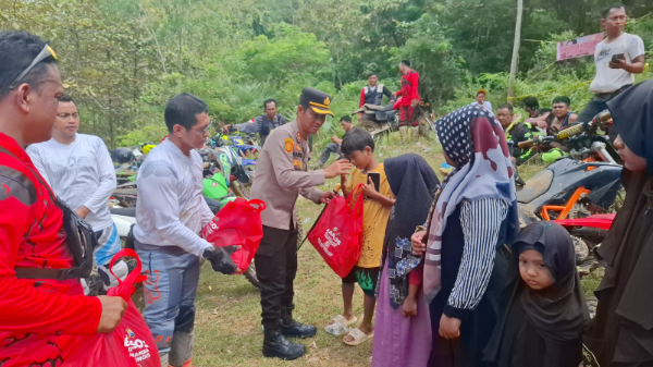Tidak hanya mengedepankan olahraga dan tantangan, kegiatan Bhayangkara Trail Adventure juga diisi dengan pemberian bantuan sosial kepada masyarakat di Desa Jrengoan Kecamatan Omben Sampang.