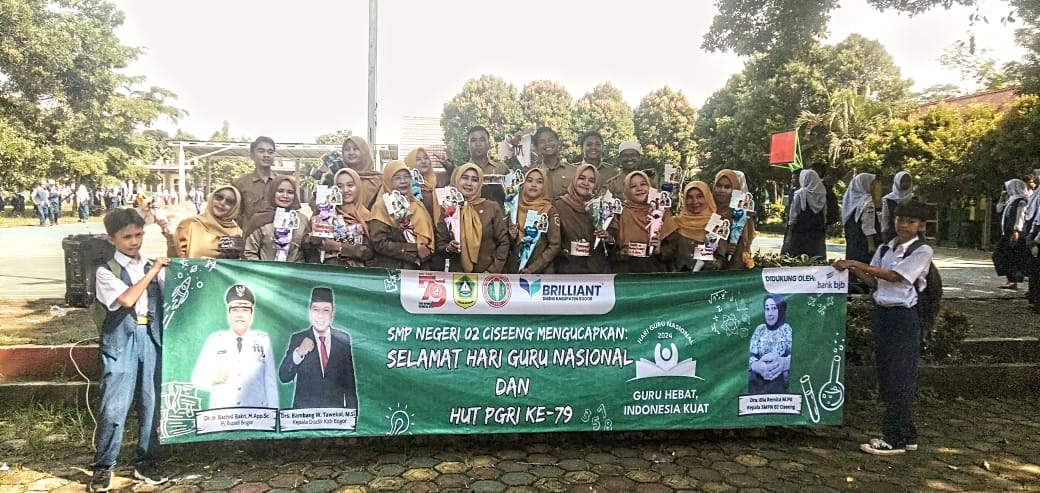 Hari Guru Nasional tahun 2024 mengusung tema "Guru Hebat, Indonesia Kuat", tema ini diharapkan bisa membangkitkan semangat para guru untuk menjadi pendidik yang hebat demi terciptanya Indonesia yang lebih maju. Merujuk laman Kementerian Pendidikan dan Kebudayaan RI, Hari Guru Nasional ada tidak lepas dari peran pentingnya keberadaan Persatuan Guru Republik Indonesia (PGRI). Selasa, 26 November 2024 tampak di lapangan ditengah-tengah Gedung Sekolah SMPN 2 Ciseeng Jln. Raya Amd. Kuripan ada kegiatan.