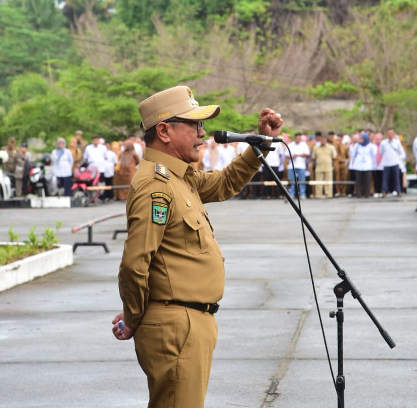 Bupati Padang Pariaman, John Kenedy Azis pimpin Apel perdana, setelah Ramadhan dan cuti lebaran, Bupati JKA langsung ambil posisi sebagai Pembina Apel, yang dihadiri seluruh ASN di lingkungan Pemerintah Padang Pariaman, pada Selasa (8/4/25) Mengawali sambutannya, JKA sampaikan ucapan selamat hari raya selamat Idul Fitri 1446 H dan dan mohon maaf lahir dan bathin kepada seluruh jajaran ASN Pemerintah Padang Pariaman. Pada kesempatan itu, JKA kembali menegaskan pentingnya disiplin masuk kerja dan disiplin kerja. JKA mengatakan, tidak mau mendengar ada nya ASN yang menitipkan absensi, ada yang mempermainkan kehadirannya sementara yang bersangkutan tidak masuk kantor. "Oleh karena itu, saya minta kepada BKPSDM untuk investigasi dan inventarisasi mereka-meraka yang tidak masuk kerja tapi tetap terima gaji dan fasilitas lainnya," tegasnya. Selanjutnya Dirinya juga menegaskan, tentang tidak ada lagi titip-titipan pegawai, kerena jumlah pegawai kuota sebenarnya sudah cukup dan rasio belanja pegawai kita sudah sangat tinggi. "Jadi saya tegaskan, tidak ada lagi titip-titip pegawai, tidak ada lagi pindah-pindahan pejabat dan ASN selain yang saya setujui, kecuali atas persetujuan saya," ucap JKA kembali menegaskan. Kemudian dengan perasaan dan harapan, mendalam JKA mengajak semua pegawai/ASN mulai dari jajaran tertinggi Sekda, dan sampai seluruh ASN se-Kabupaten Padang Pariaman, untuk bersama- sama membantu dalam mewujudkan visi dan misinya. "Yang Saya inginkan saat ini, adalah kesejahterakan masyarakat, pelayanan kesehatan yang prima, pelayanan pendidikan yang berkarakter, memperbaiki jalan putus, memperbaiki irigasi putus serta meningkatkan PAD tentu semuanya atas dukungan Bapak dan Ibu semua," ucapnya. Usai Apel Gabungan, dilanjutkan dengan Halal Bihalal di Hall IKK, dilanjutkan dengan Rapat evaluasi dan penyampaian rencana program masalah dan solusi dari seluruh isu yang muncul ditengah masyarakat. Pewarta : Fakhri/Relis Kominfo