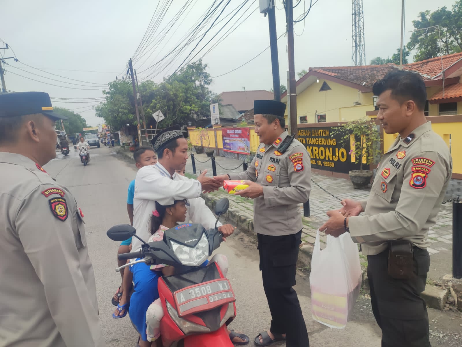 Tangerang|Gardatipikornews.com// Bicara tentang berbagi bukan hanya tentang bagaimana kita bisa memberikan uang kepada orang yang kurang mampu atau yang sedang membutuhkan saja. Berbagi bisa bermakna luas, salah satunya berbagi makanan kepada sesama. Seperti yang terlihat di Jalan Raya Kronjo - Balaraja tepatnya depan Mapolsek Kronjo, Kapolsek Kronjo Iptu Dedi Ruswandi, SH., bersama peronsel seusai salat Jumat, menyediakan puluhan nasi box untuk dibagikan kepada masyarakat, Jum’at (24/2/2023).