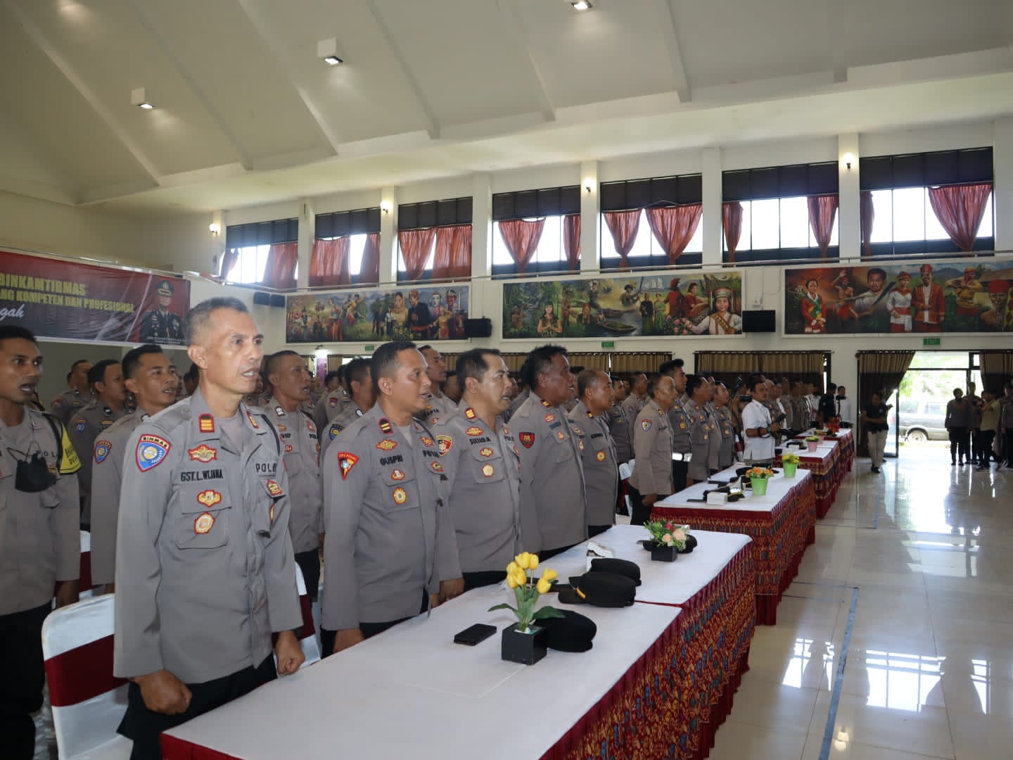Dalam sambutan Kapolres menyampaikan bahwa Polres Lombok Tengah terdiri dari 12 Polsek dan 1 Polsek Kawasan, terdapat 139 Desa dengan jumlah Babhinkamtibmas 139 personil, pada tahun 2023 ada 15 Desa yang belum difinitif sehingga akan membutuhkan tambahan personil Bhabinkamtibmas untuk menghadapi Pilpres pada tahun 2024.