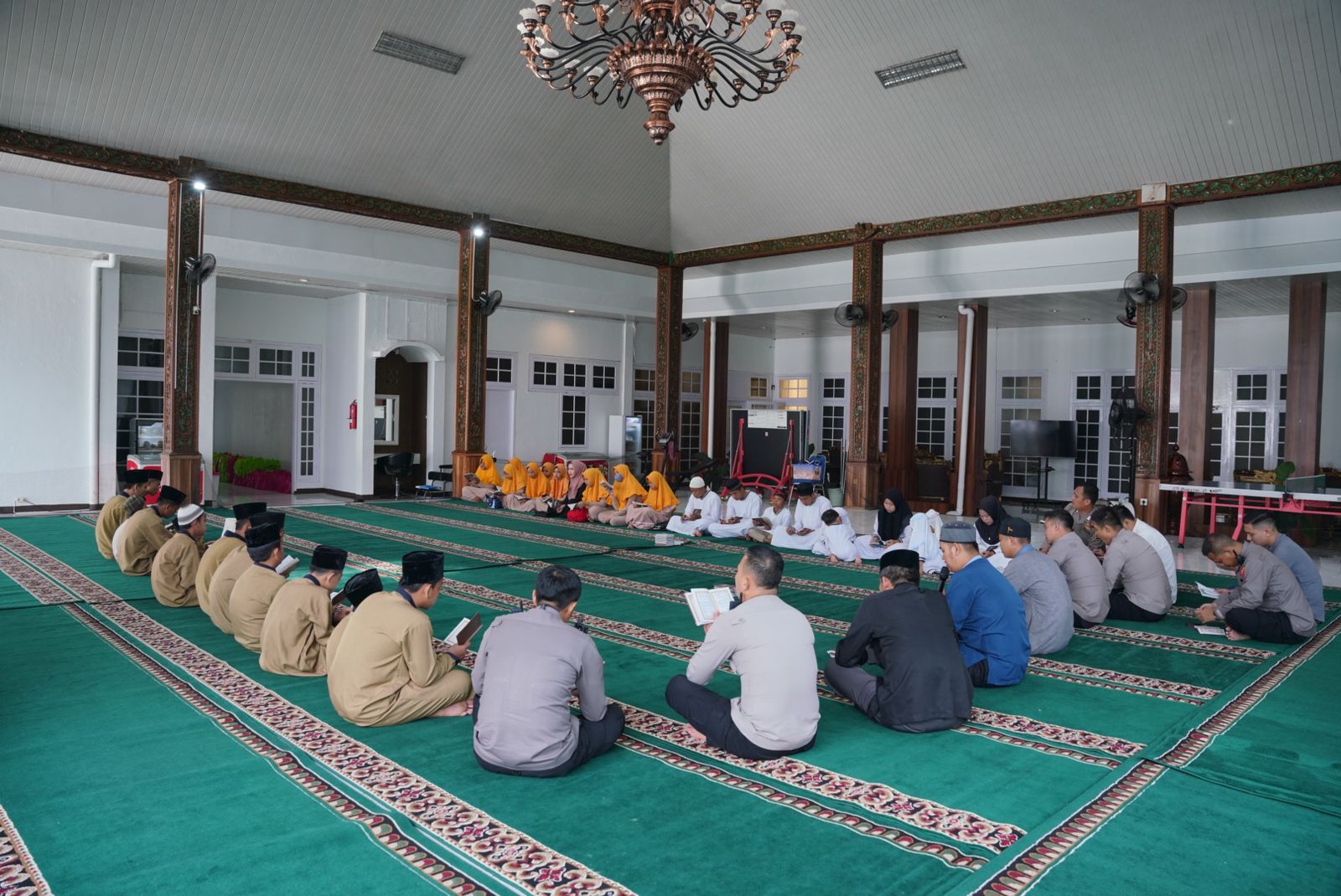 Dari pantauan Awak media kegiatan shalat berjamaah dan doa bersama tersebut dimulai bada ashar dilanjutkan bada sholat magrib dengan membaca surah yasin tahlil yang dipimpin personel Bidhumas polda Sumsel yang dihadiri staf Spripim anak Panti Asuhan dan takmir Masjid Alaman Komplek Pakri Palembang