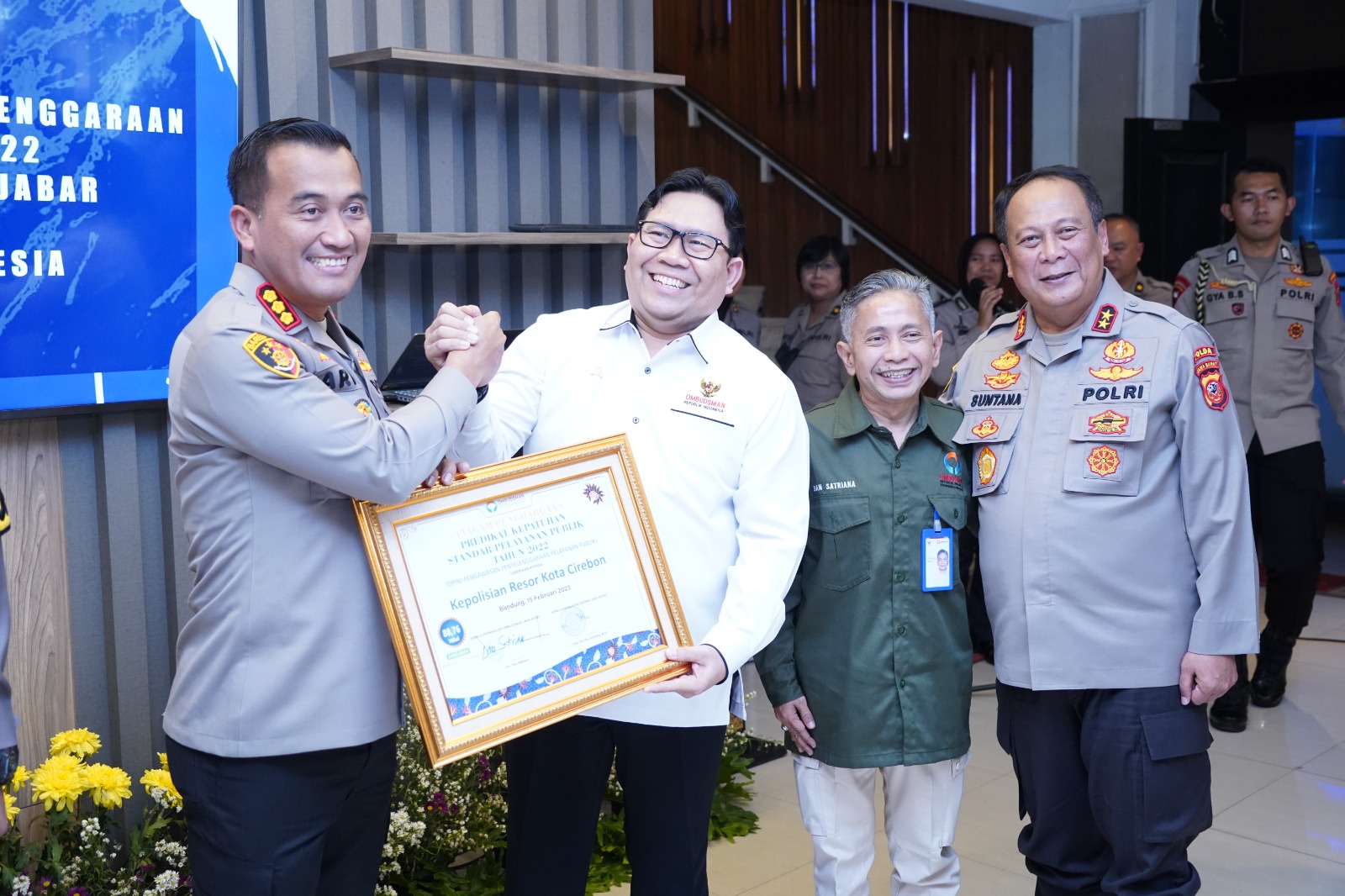 Kali ini, dalam waktu kurang dari satu pekan Polresta Cirebon mendapat penghargaan dari Ombudsman RI dengan Penilaian Opini Kualitas Tertinggi Kategori A. Penghargaan tersebut diterima langsung oleh Kapolresta Cirebon, Kombes Pol Arif Budiman, S.I.K, M.H, di Ruang Mungpulung Mapolda Jabar pada Senin (27/2/2023).