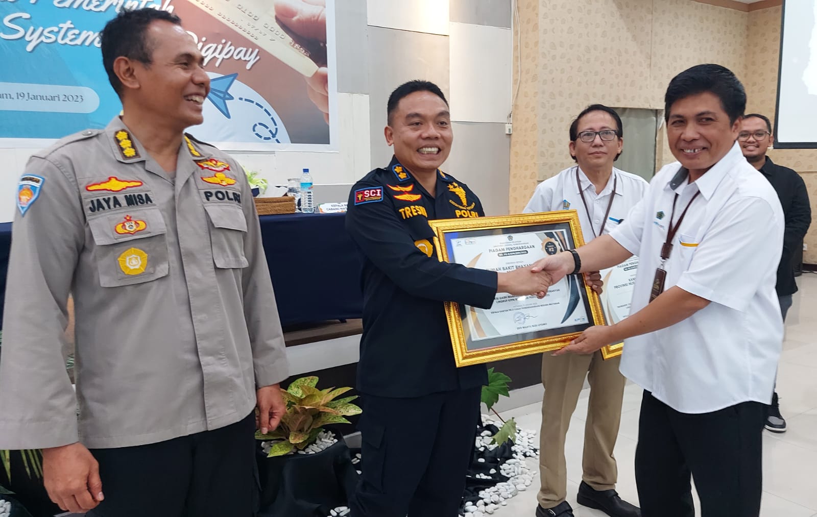Kamis, 19/01/2023, Atas prestasi yang diraihnya, Kepala Rumah Sakit (Karumkit) Bhayangkara Mataram AKBP dr. I Komang Tresna Sp.OG, (K), Mars.,menerima penghargaan dari Kantor Pelayanan Perbendaharaan Negara (KPPN) Mataram.
