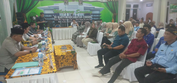 Diantara para anggota dewan dari Dprd Kab. Bogor Dapil VI tampak Okke Fauzi (Golkar), Andi Permana (Gerindra), Arif Rochmawan (Gerindra), Sutisna (Pan), Irfan Baihaki (Pks), Sugara (Ppp), Irman Nurcahya (Demokrat) yang kehadirannya disambut Plt. Camat Ciseeng Adhi Nugraha S.Stp MH yang didampingi Sekcam Ahmad Rosadi S.Ag, Kasi Ekbang Lukman Riadi S.Ip, Kasi Trantib Tajudin S.Sos M.Si, Kasipem M. Rizal S.Sos, Anis Sania, Yoga Abdurohman, Evi Amelia dan yang lainnya.