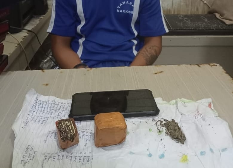 “Saat kami lakukan pemeriksaan atau penggeledahan terhadap RR, kami mendapatkan 3 paket daun ganja kering dengan berat total 40,95 gram dan 1 (Satu) unit telepon genggam yang disembunyikan di dalam kantong plastik,” sambungnya.