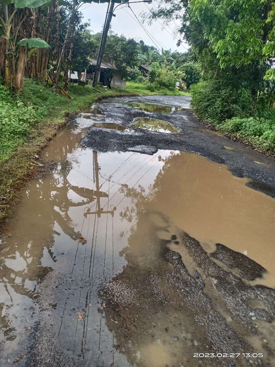 “Disamping itu tidak ada saluran air disisi jalan yang menyebabkan air hujan mengalir deras dijalan, sehingga jalan aspal rontok kecuali di cor beton tahan air,” terangnya.