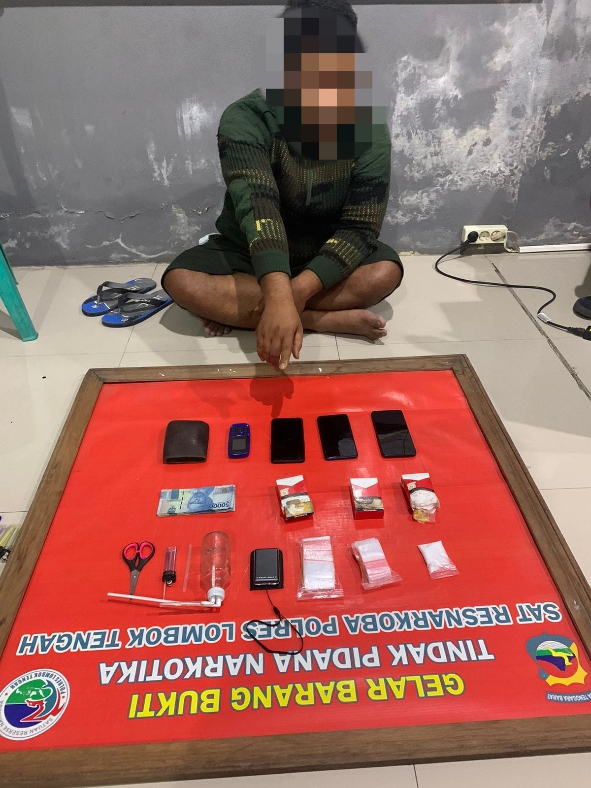 IPTU Hizkia mengatakan pelaku ditangkap dengan barang bukti 15 gram sabu-sabu, pada hari Senin (20/2) di rumahnya di Kecamatan Praya beserta barang bukti lainnya seperti empat unit HP, uang tunai sejumlah Rp. 400.000, satu buah timbangan digital, dua bendel plastik klip kosong dan serangkaian alat hisap.