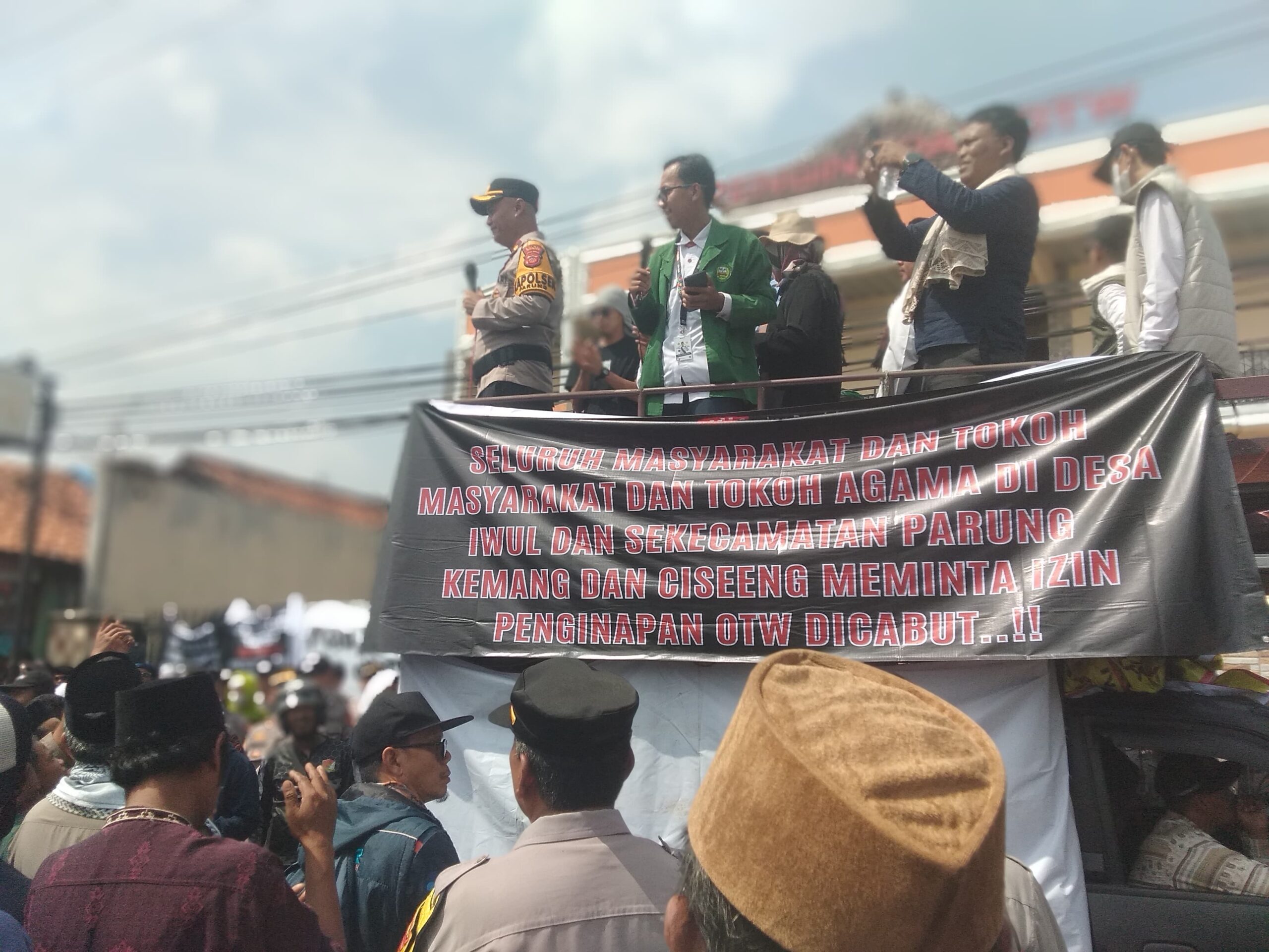 Suasana semakin memanas manakala beberapa orator yang di atas mobil berpengeras suara tetap menuntut penutupan Penginapan OTW karena diduga menjadi ajang prostitusi dan perzinahan. Apalagi kelengkapan perizinan belum dipegang pihak manajemen. Warga Desa Iwul tidak ingin wilayahnya menjadi tempat perzinahan.