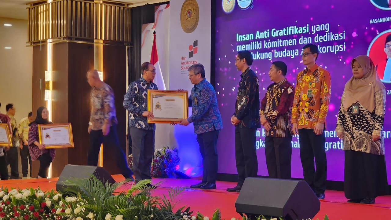 - Selasa, 10 Desember 2024, Dalam rangka peringatan Hari Anti-Korupsi Se-Dunia pada 9 Desember 2024, Mahkamah Agung RI mengadakan Penyerahan Sertifikat SMAP dan Penganugerahan Insan Anti Gratifikasi Tahun 2024. Kegiatan ini dipimpin langsung oleh Ketua Mahkamah Agung RI, YM. Prof. Dr. H. Sunarto, S.H. M.H. dan dihadiri jajaran piminan Mahkamah Agung RI. Dari Pelaporan Gratifikasi yang telah diterima, baik melalui Unit Pengendali Gratifikasi (UPG) maupun aplikasi GOL (Gratifikasi Online), Badan Pengawasan memilih beberapa orang hakim dan aparatur pengadilan untuk mendapatkan apresiasi berupa Penganugerahan Insan Anti-Gratifikasi dengan kriteria berupa Nilai Pelaporan, Ketepatan Waktu Pelaporan dan Jumlah Pelaporan. Dari hasil penilaian tersebut maka terpilih beberapa hakim dan aparatur pengadilan untuk mendapatkan Penganugerahan Insan Anti-Gratifikasi, di mana 3 (tiga) di antaranya berasal dri lingkungan peradilan umum, yaitu: 1.Sugiyanto, S.H., M.H., Sekretaris Mahkamah Agung dan Plt. Kepala Badan Pengawasan; 2.Hasanudin, S.H., M.H., Direktur Pembinaan Tenaga Teknis Peradilan Umum Direktorat Jenderal Badan Peradilan Umum; 3.I Ketut Darpawan, S.H., Ketua Pengadilan Negeri Dompu; 4.Muh. Irfan Husaeni, S.Ag., M.S.I., Ketua Pengadilan Agama Ambarawa; 5.Mohamad Zakiuddin, S.H., Ketua Pengadilan Negeri Pulang Pisau; 6.Badar Hikmat, A.Md., S.H., Panitera Pengganti Pengadilan Tata Usaha Negara Bandung; 7.Rizka Dwi Puspita Sari, A.Md.A.B., Arsiparis Terampil sekaligus Bendahara Pengadilan Agama Polewali. ( @Red@ksi.gtn.com )