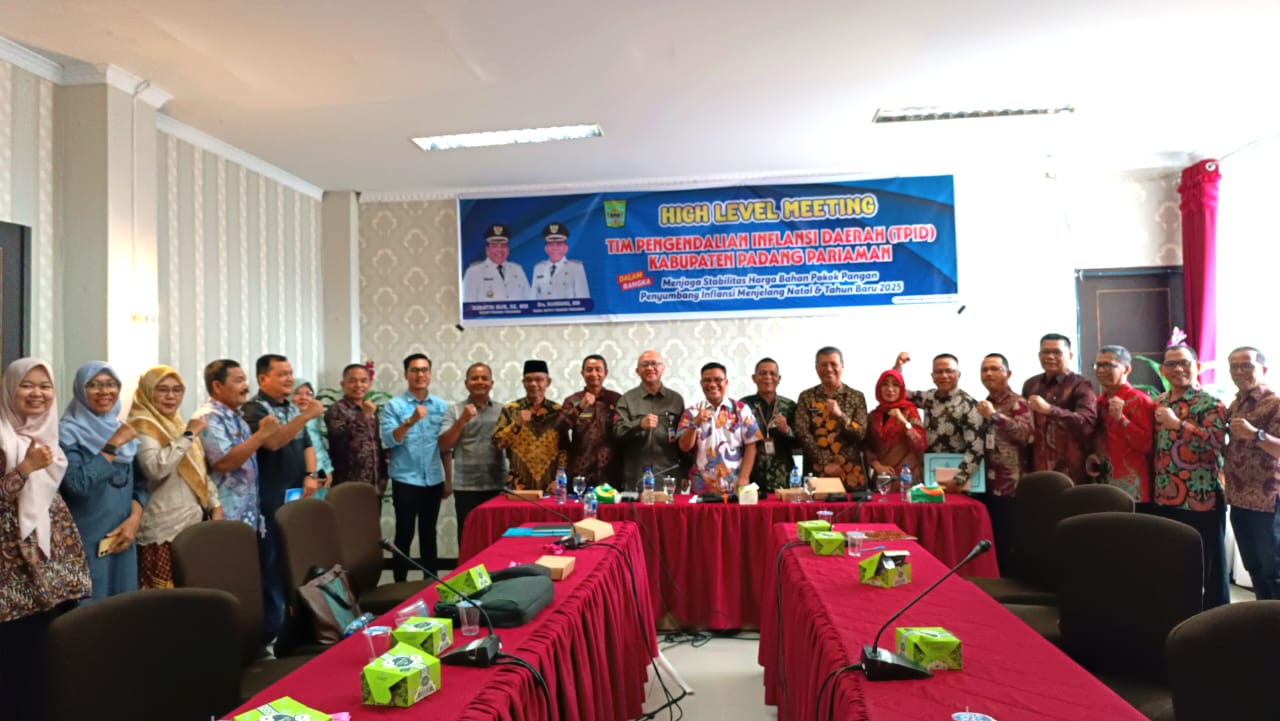 Dalam Rangka persiapan pengendalian Inflasi Daerah menjelang Natal dan Tahun Baru 2025 pemerintah Padang Pariaman laksanakan High Level Meeting. Acara tersebut, dibuka langsung oleh Wakil Bupati Padang Pariaman, bertempat di ruang rapat Sekda, Kantor Bupati Lt. 2 Kawasan IKK Parik Malintang, Kamis, (05/12/2024). Mengawali sambutannya Wabup Rahmang menyebutkan, bahwa TPID merupakan tim yang bertugas memantau dan menyiapkan langkah-langkah untuk mengatasi permasalahan inflasi khususnya di daerah. Inflasi atau gejolak kenaikan harga yang tak terkendali dapat membuat stabilitas ekonomi terganggu. "Apalagi Menjelang datangnya tahun baru dan natal, perlu dilakukan berbagai persiapan dilakukan oleh jajaran Pemerintah Daerah Padang Pariaman melalui instansi terkait yang tergabung dalam TPID Padang Pariaman," sebutnya. Lebih lanjut Rahmang mengatakan, sebagai wadah Koordinasi, TPID memiliki peran yang semakin strategis dalam mendukung pencapaian sasaran infalsi yang rendah dan stabilitasi harga di daerah. "Rumusan kebijakan yang akan dihasilkan dalam High Level Meeting (HLM) dan diharapkan dapat menjadi langkah antisipatif menghadapi gejolak Harga khususnya kebutuhan bahan pangan yang disebabkan penigkatan permintaan dan keterbatasan pasokan menjelang Natal dan Tahun Baru 2025" imbuhnya. Rahmang mengungkapkan, Kabupaten Padang Pariaman Terletak diantara dua Kota sampel Indek Harga Konsumen (IHK), yaitu, Kota Padang dan Kota Bukittinggi, serta dilewati oleh jalan Lintas Sumatera, sebagai jalur distribusi kebutuhan pangan, dan menjadi faktor lain yang menjadi perhatian bagi pemerintah Kabupaten Padang Pariaman dalam pengendalian inflansi. Selain itu, orang No 2 di Padang Pariaman ini mengharpakan, program dan sub program daerah yang telah disusun dapat dilaksanakan oleh OPD teknis terkait di Padang Pariaman. "Kami sangat mengharapkan, melalui pelaksanaan High level Meeting ini, dapat dideteksi potensi permasalahan yang akan muncul, dalam upaya menciptakan inflasi yang rendah dan stabil, sehingga dapat dirumuskan kebijakan baik untuk jangka pendek maupun jangka menengah dalam upaya pengendalian inflasi di Kabupaten Padang Pariaman," tutup Rahmang. Turut hadir dalam kegiatan tersebut, unsur Forkopimda Padang Pariaman perwakilan Dandim 0308, perwakilan Kejari Pariaman, Depuri Gubernur Bank Indonesia Kepala BPS Padang Pariaman, Asisten, Staf serta Selutuh Kepala Perangkat Daerah se- Padang Pariaman. Pewarta : Fakhri Gtn