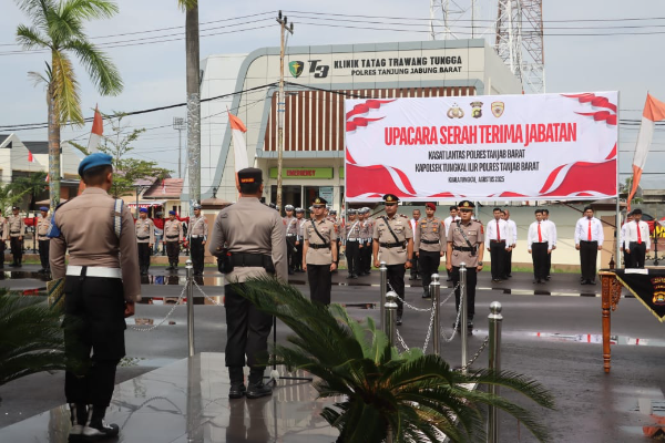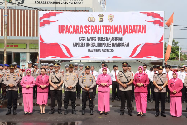 KualaTungkal || Gardatipikornews.com -- Jajaran Polres Tanjung Jabung Barat (Tanjab Barat), melaksanakan upacara serah terima jabatan (sertijab) untuk dua posisi strategis, yakni Kasat Lantas dan Kapolsek Tungkal Ilir, Jumat pagi (22/8/2025). Upacara berlangsung khidmat di Lapangan Apel Mako Polres Tanjab Barat, dipimpin langsung oleh Kapolres Tanjab Barat AKBP Agung Basuki, S.I.K., M.M.