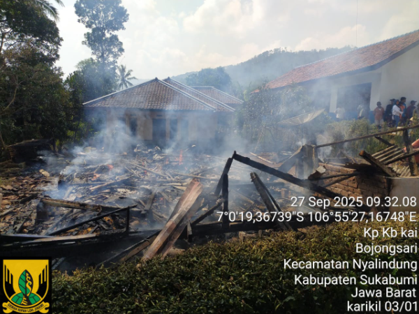 Kabupaten Sukabumi, Nyalindung, Jawa Barat || Gardatipikornews.com -- Asap hitam membubung di langit Kampung Karikil, Desa Bojongsari, Kecamatan Nyalindung, Kabupaten Sukabumi, Sabtu (27/9/2025) pagi. Sekitar pukul 09.00 WIB, rumah milik Ade Habsah hangus terbakar hingga rata dengan tanah.
