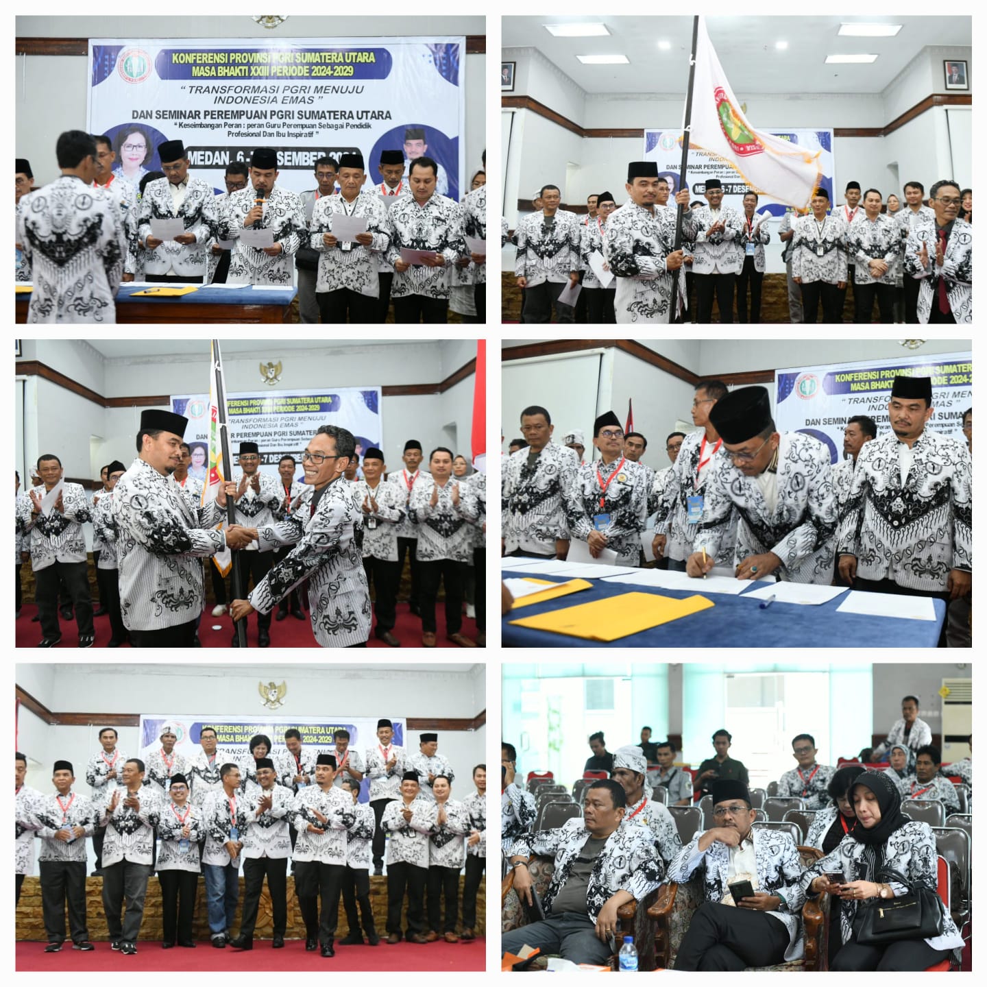 - Saiful Abdi kembali terpilih menjadi Ketua Umum Persatuan Guru Republik Indonesia (PGRI) Sumut. Dia memastikan PGRI Sumut akan memberikan dukungan penuh pada Pemerintah Provinsi Sumut (Pemprov Sumut) untuk meningkatkan kompetensi guru. Pemerintah Pemprov Sumut akan fokus dalam meningkatkan kompetensi guru di tahun depan. Mengingat saat ini berdasarkan data Dinas Pendidikan Sumut, ada sekitar 40% (total guru Sumut 44.000 guru) kompetensinya masih di bawah standar. "Kita akan dukung penuh kebijakan tersebut untuk meningkatkan kapasitas guru kita, tetapi kita juga akan terus memperjuangkan kesejahteraan guru," kata Saiful Abdi usai pelantikan pengurus PGRI Sumut di Aula Danau Toba, Balai Besar Guru Penggerak (BBGP), Jalan Kenangan Raya Nomor 64, Medan, Sabtu (7/12). Saiful juga mengatakan dia dan para pengurus akan meningkatkan soliditas organisasi yang dia pimpin. Salah satu caranya adalah meningkatkan komunikasi lewat teknologi. "Kita perkuat soliditas karena teknologi saat ini sudah memperkecil tantangan ruang dan waktu. Selama ini, jarak yang banyak menjadi kendala kita, sekarang mudah-mudahan itu bisa kita atasi," kata Saiful Abdi yang merupakan Ketua Umum PGRI Sumut periode sebelumnya ini. Ketua dan kelengkapan pengurus PGRI Sumut masa bakti XXIV tahun 2024-2029 dilantik oleh Ketua Lembaga Konsultasi dan Bantuan Hukum (LKBH) PB PGRI Abdul Waseh. Ketua Umum terpilih yaitu Saiful Abdi, Wakil Ketua I Ilyas S Sitorus, Wakil Ketua II Syamsul Napitupulu, Wakil Ketua III Jamilin Purba, Wakil Ketua IV Saham Malatua Nainggolan dan Wakil Ketua V Junaidi. Selain itu, Abdul Waseh juga melantik Sekertaris Umum Saiful Amri, Sekretaris I Bobby NP, Sekretaris II Surya Dharma, Sekretaris III Mardimpu Sihombing, bendahara Nadhratun Nur dan Wakil Bendahara Cici Mahruliana serta kelengkapan biro-biro. Ditempat yang sama Wakil Ketua I PGRI Sumut, Ilyas Sitorus yang juga Kadis Kominfo Sumut akan semaksimal mungkin membantu program kegiatan PGRI Sumut sebagaimana yang telah disampaikan Ketua Umum PGRI Sumut Pak Saiful Abdi, salah satunya percepatan pemanfaatan teknologi di lingkungan pendidikan. "Bapak dan ibu dipilih melalui konferensi, saya berharap agar melaksanakan tugas dengan penuh tanggung jawab," kata Abdul Waseh. *(Rizky Zulianda)*