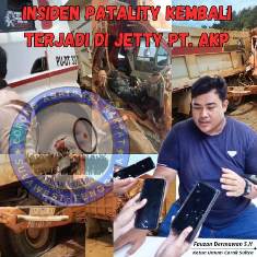 - Kecelakaan Kerja tersebut terjadi pada Minggu, 09 Februari 2025 di Wilayah Izin Usaha Pertambangan (WIUP) PT. Adi Kartiko Pratama (AKP) Diketahui pada hari Minggu 09 Februari 2025 diduga telah terjadi kecelakaan kerja pada wilayah Jetty PT. Adi Kartiko Pratama (AKP) atas insiden tersebut mengakibatkan 1 orang karyawan meninggal dunia. Pauzan Dermawan selaku ketua Umum Corak Sultra menduga bahwa insiden Fatality tersebut berasal dari Dump Truck PT. Kelompok Delapan Indonesia ( KDI ) yang diduga sedang mengangkut Ore Nikel PT. Kelompok Delapan Indonesia ( KDI ) yang akan dikapalkan menggunakan Jetty milik PT. Adi Kartiko Pratama (AKP ). Atas insiden tersebut Ketua Umum Corong aspirasi Rakyat Sulawesi Tenggara Pauzan Dermawan angkat bicara, menurut dugaan nya kecelakaan kerja pada PT. Adi Kartiko Pratama (AKP) bukan kali pertama. Diduga sudah beberapa kali terjadi tetapi belum ada tindak tegas yang dilakukan oleh pihak Disnakertrans provinsi Sulawesi Tenggara. " Diduga Kecelakaan Kerja yang terjadi pada PT. AKP sudah kesekian kalinya sehingga perlu kemudian ada langkah tegas yang harus diambil oleh Pihak Disnakertrans" Jelas Pauzan Dermawan. Lebih, lanjut pihaknya juga menduga bahwa PT AKP tidak menerapkan Sistem K3 di wilayah kerjanya, sehingga insiden kecelakaan Kerja terus terjadi. "Dugaan kami bahwa PT. AKP tidak menerapkan Sistem K3 itu sangat kuat mengapa, karena beberapa kali kerap terjadi kecelakaan Kerja di WIUP PT. AKP tersebut." Tegas Ucang Sapaan Akrabnya. Pauzan Dermawan juga mempertanyakan terkait keterlibatan PT. Kelompok Delapan Indonesia ( KDI ) yang diduga menjadi penyebab terjadinya kecelakaan kerja tersebut. Menurut nya PT. Kelompok Delapan Indonesia ( KDI ) juga tidak menerapkan sistem K3 dalam operasi kerjanya "Kami duga bahwa PT. Kelompok Delapan Indonesia ( KDI ) tidak menerapkan sistem K3 pasalnya dari data yang kami dapatkan dilapangan pada saat insiden itu terjadi korban justru tidak mengenakan Alat Pelindung Diri ( APD )" Terang Pauzan Dermawan Terakhir, pihaknya dalam waktu dekat akan menggelar Demonstrasi ke Disnakertrans, DPRD Provinsi dan ESDM Provinsi agar meminta tindakan tegas atas kecelakaan Kerja yang terjadi antara PT. Kelompok Delapan Indonesia ( KDI ) dalam WIUP PT. Adi Kartiko Pratama (AKP). "Ya, dalam waktu dekat kami akan melakukan aksi demontrasi dan mengawal kasus kecelakaan Kerja ini agar perusahaan tersebut segera diberikan sanksi tegas" Tutup Fauzan Dermawan. ( @idr. Kaperwil gtn )