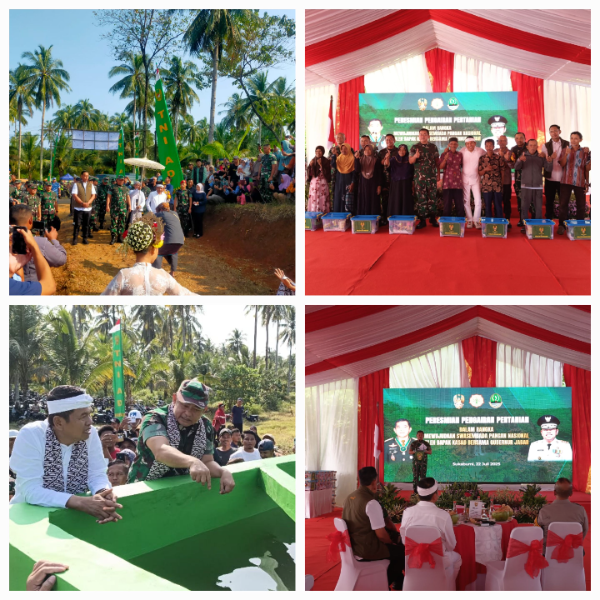 Kabupaten Sukabumi, Jawa Barat || Gardatipikornews.com -- Selasa 22 Juli 2025 – Dalam upaya mendukung program swasembada pangan nasional, Kepala Staf Angkatan Darat (KASAD) Jenderal TNI Maruli Simanjuntak, M.Sc., meresmikan proyek pengairan pertanian di Desa Pangumbahan, Kecamatan Ciracap, Kabupaten Sukabumi. Didampingi Gubernur Jawa Barat, H. Dedi Mulyadi, S.H., M.M., peresmian ini menandai langkah strategis dalam meningkatkan produktivitas pertanian melalui optimalisasi lahan tadah hujan.