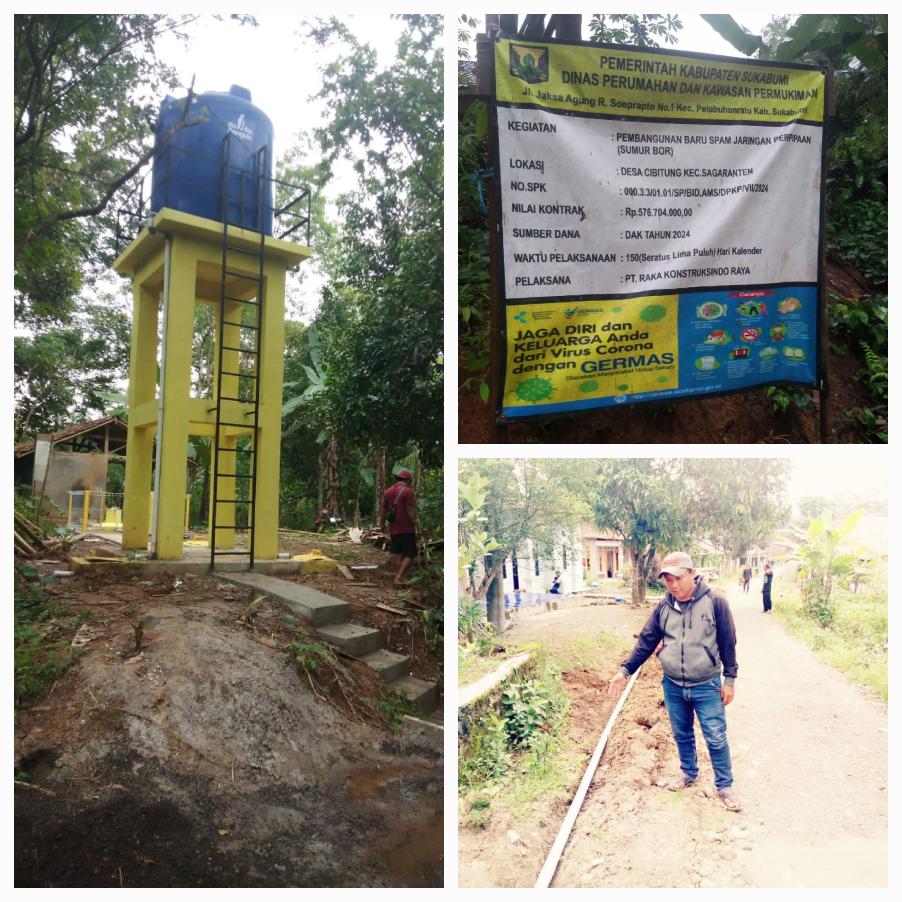 - Pemerintah pusat Atou pun daera telah memberikan bantuan yang begitu besar ke semua SKPD Salah bantuan Dinas Perumahan dan kawasan Pemukiman. Pembangunan Baru Spam Jaringan Perpipaan ( Sumur Bor) PT RAKA KONSTRUKSINDO RAYA Salah satu penerima Teander dalam pembangunan Titik Lokasi Desa Cibitung Kecamatan Sagaranten dengan Nilai sebesar 576.704.000.00S Sumbar dana ( DAK) Dana Alokasi Khusus Tahun 2024 Ijad pelaksana dalam pembangunan ketika di wawancarai awak media. menjelaskan dalam pelaksanaan pembangunan kami selalu menekankan kepada para pekerja harus sesuai Spek tek & (RAB) Dari mulai bahan bahan mantrial dalam pekerjaan jangan sampai asal asalan, Ijad menambahkan pembangunan sumur BOR ada 100 Rumah yang teraliri kedusanan sukagalih Kp ci rempak Kp puncak Ceri Kp kebon Kalapa, semoga dengan adanya bantuan ini bisa di rasakan sama warga masyarakat jelasnya Irvan sanusi kepala desa Cibitung kecamatan Sagaranten kami mewakili Warga masyarakat. merasa gembira dengan adanya bantuan sumur BOR karena air itu salah satu kebutuhan bagi warga masyarakat sehari sehari. Apalagi Di musim kemarou setidak nya dengan ada nya bantuan ini bisa mengurangi beban warga yang tadi nya sulit air bersih jelasnya Di tempat terlisah (Kuslan yakub /Lanak) Tokoh masyarakat menabahkan apa yang di sampaikan sama kepala desa, kami berterimakasih kepada dinas yang terkait dan kepada semua Pihak yang telah medorong ada nya bantuan sumur BOR karena dari dulu di nanti nantikan warga sekarang terpenuhi jelasnya nya. Pewarta : Yayan GTN