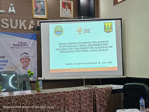 Kabupaten Sukabumi, Gegerbitung, Jawa barat || Gardatipikornews.com -- Desa Gegerbitung, Kecamatan Gegerbitung, Kabupaten Sukabumi, mengikuti kegiatan penilaian paparan Anugerah Gapura Sribaduga tingkat Kabupaten Sukabumi. Acara tersebut berlangsung di Aula Kecamatan Sukaraja, yang digelar pekan lalu.