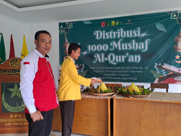 Pada momentum Milad SEPMI Ke-62 Alhamdulillah Pimpinan Cabang kabupaten Sukabumi dapat bekerjasama dengan komunitas akar literasi untuk mendistribusikan Seribu Mushaf Al-Qur'an, yang kemudian nanti kita akan distribusikan ke setiap Anak Cabang di kabupaten Sukabumi. Semoga nanti kedepan terus dapat berkolaborasi dalam pembinaan dan menumbuhkan minat untuk membaca Al Qur'an. Pungkasnya.