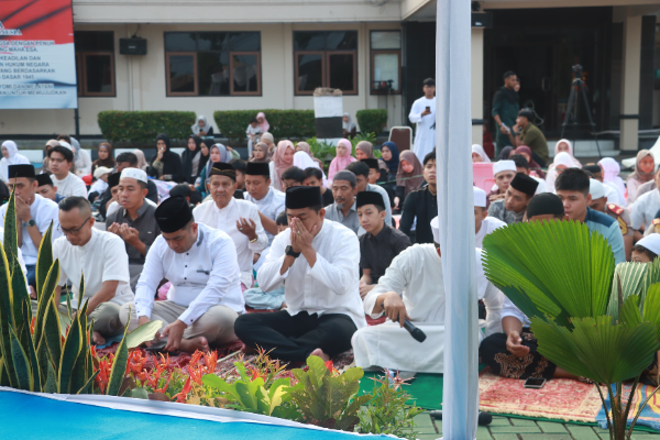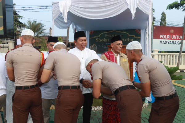 Kabupaten Sukabumi, Jawa Barat || Gardatipikornews.com -- Polres Sukabumi menggelar Sholat Idul Adha 1446 Hijriah yang dilanjutkan dengan penyembelihan hewan qurban pada Jumat pagi (6/6/2025). Kegiatan berlangsung khidmat di Lapangan Apel Mako Polres Sukabumi dan diikuti oleh Kapolres Sukabumi AKBP Dr. Samian, S.H., S.I.K., M.Si., pejabat utama, serta seluruh anggota Polres Sukabumi.