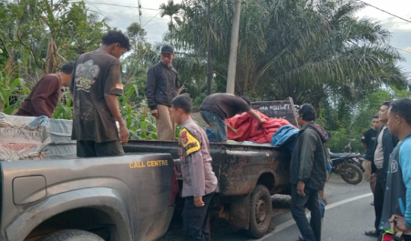 Kendaraan yang dicurigai membawa hasil curian segera dihentikan, namun tiga orang pelaku yang mengendarai motor langsung melompat dan kabur ke arah perkebunan.