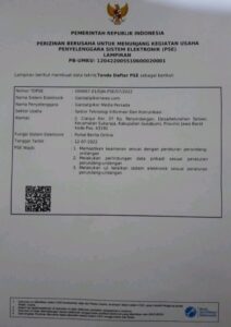 ( KBLI ) : 63122 – Portal Web Dan / Atau Platform Digital Dengan Tujuan Komersial